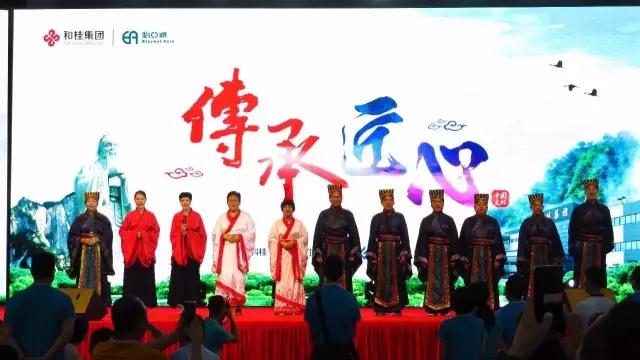 和桂集總裁黃偉文先生上臺發(fā)表了晚宴致辭,他對出席晚宴的領導、嘉賓及和桂家人表達了感謝。隨后,黃總邀請有關領導及嘉賓朋友上臺共同見證和桂集團學習國學文化的啟動儀式。他號召和桂弟子不僅傳承中華優(yōu)秀傳統(tǒng)文化,更要不斷以此鞭策自省,錘煉自我,匠心做事。在和桂集團全體常委帶領下,和桂全體員工誦讀《弟子規(guī)》,朗朗誦聲回蕩在籃球場上空。