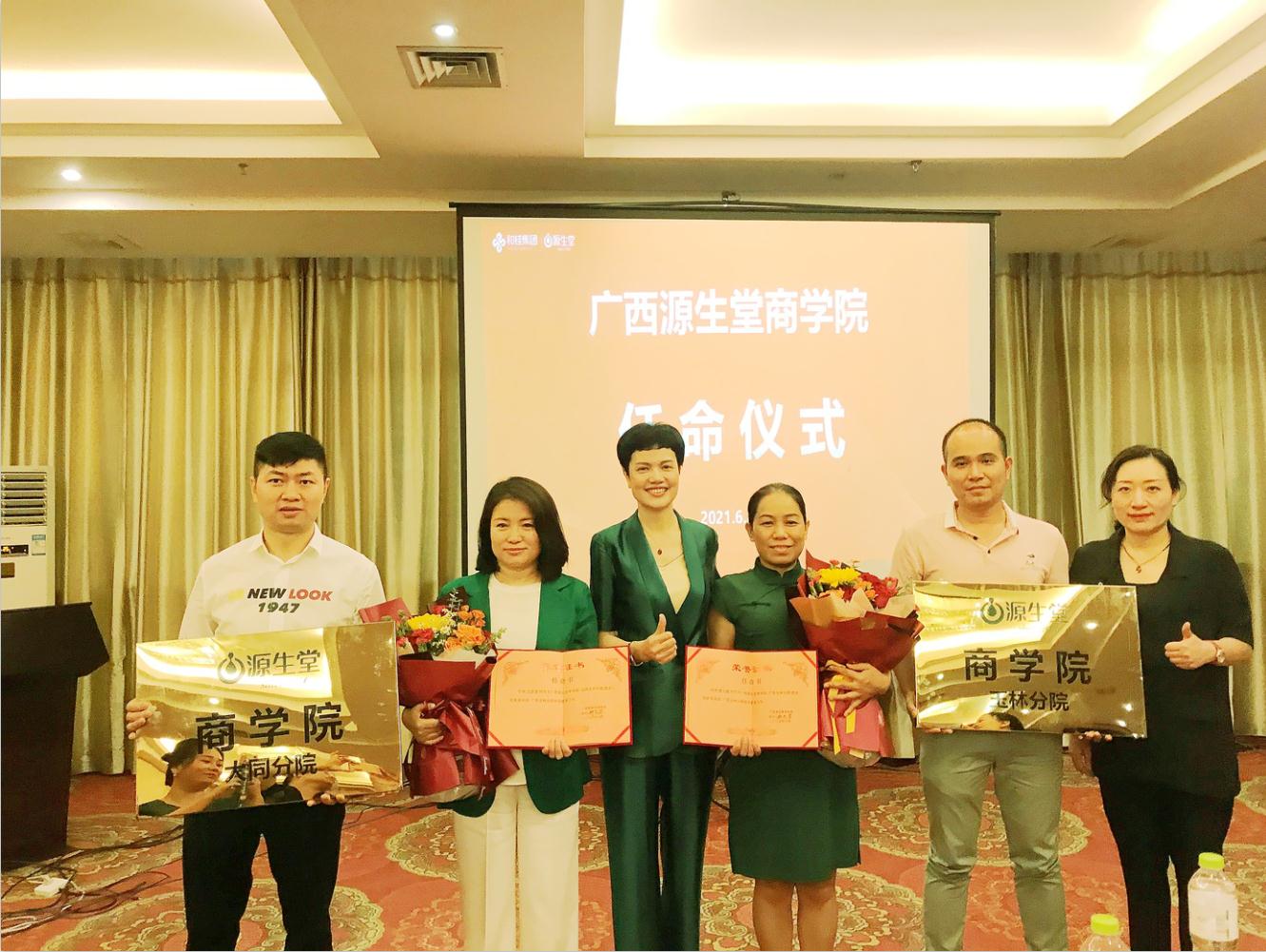 源生堂憑著先進的“產(chǎn)品+服務(wù)”模式,幫助許多合作伙伴成功創(chuàng)業(yè)致富,涌現(xiàn)了許多優(yōu)秀的合作伙伴,其中,玉林、大同的合作伙伴,憑著突出的業(yè)績表現(xiàn)贏得總部肯定,足以肩負起代理區(qū)域的人才培訓(xùn)輸出,總部決定在玉林、大同開設(shè)源生堂商學(xué)院分院,并舉行了授牌儀式。